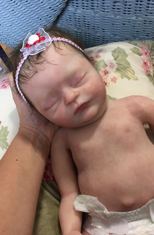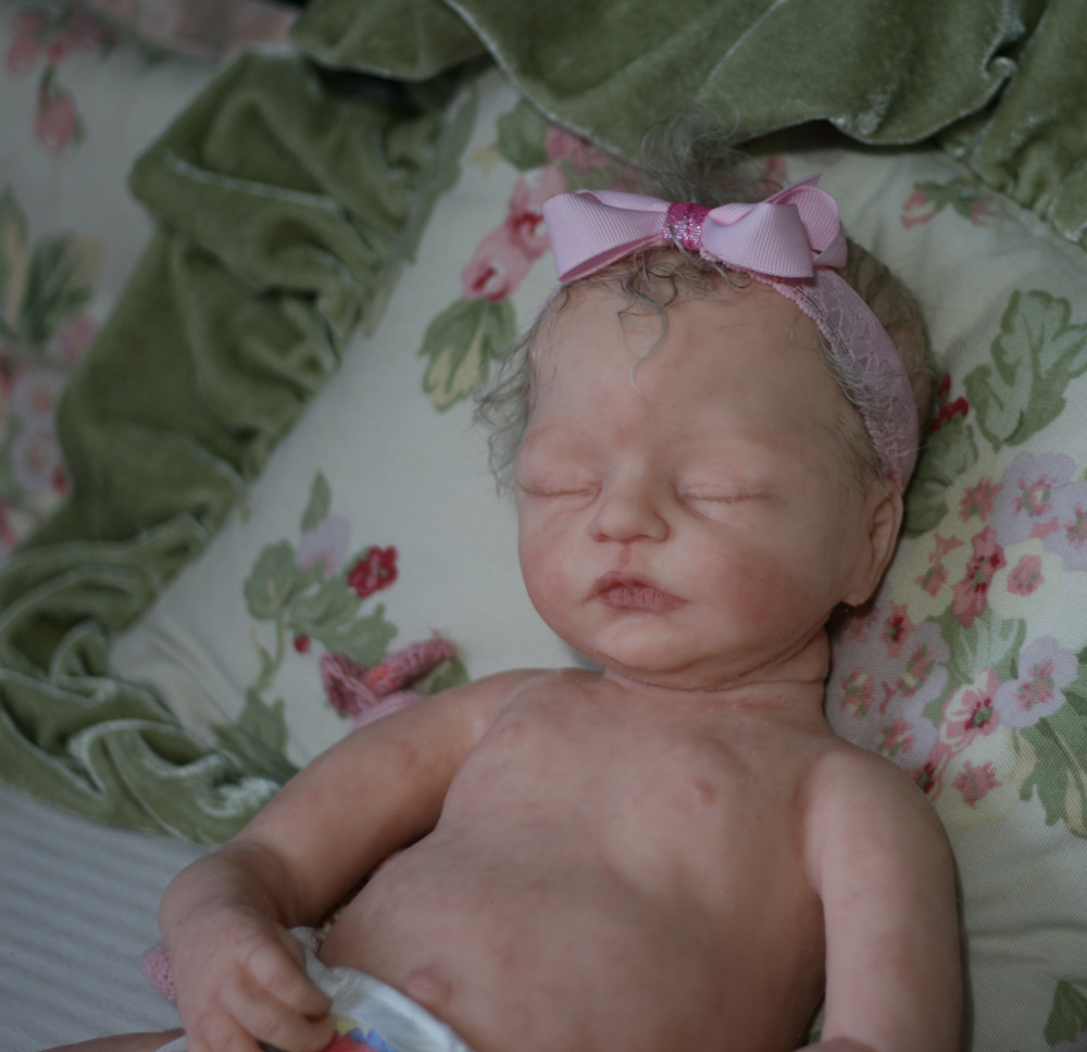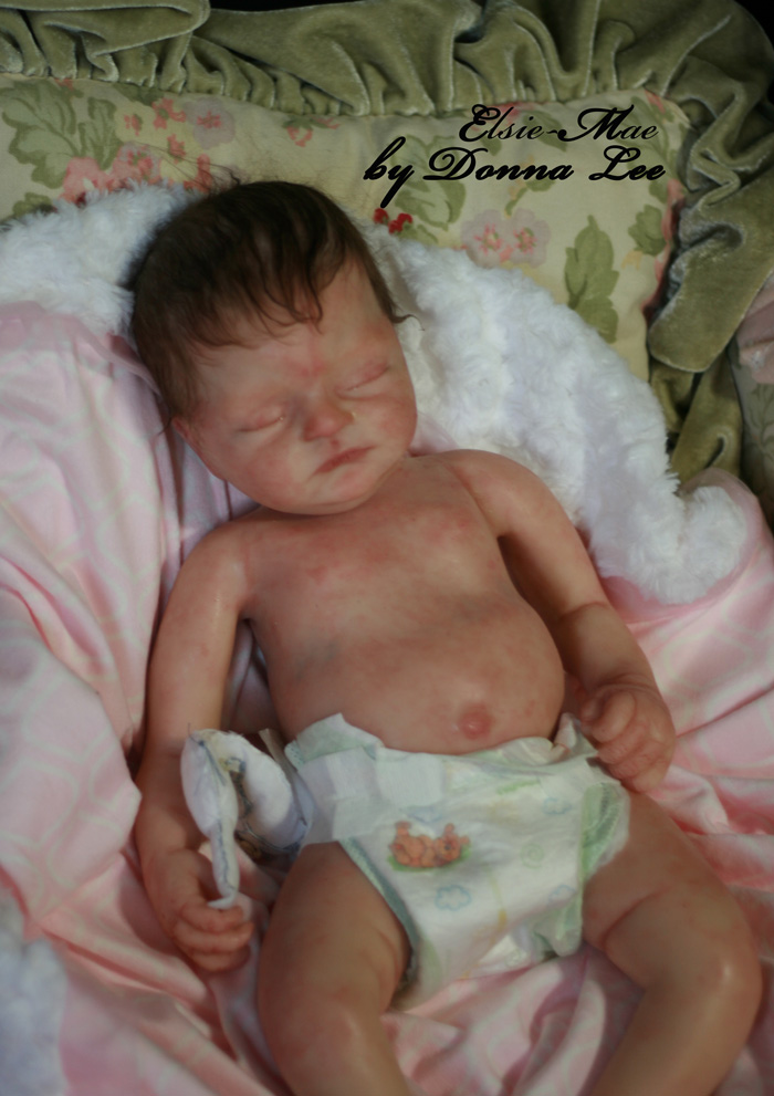 My silicone Elsie-Mae is a handmade doll that is one of a kind. She may have slight imperfections here or there: like tiny bumps or lines. These are not silicone flaws; but are original to the baby exactly the way I sculpted him. Elsie-mae is not a perfect manufactured factory made item; but is a Collectors Quality Piece of Artwork to be cherished and displayed for generations to come. She is not a child's play toy.