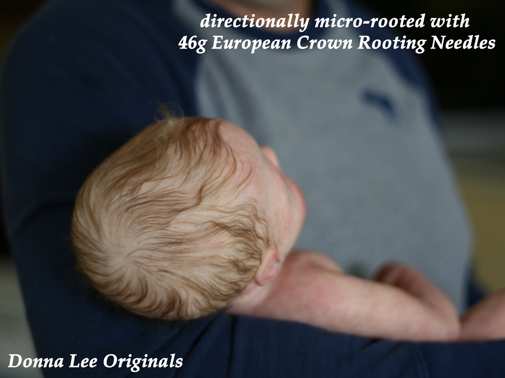 My husband directionally micro-roots Elsie-Mae's head with a 46 gauge crown rooting needle from Germany.