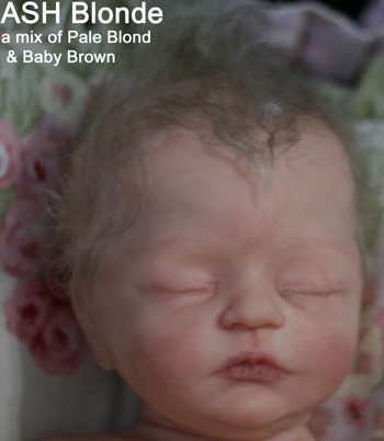 Elsie-Mae prototype #1 below with baby brown hair rooted sparse with heavy mottling & heavy undertones