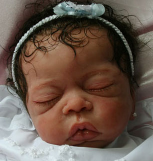 This sweet A/A or bi-racial baby is a newborn size at 18-19 inches