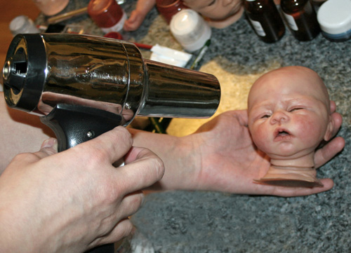 Day 4: Heat gun and apply *Silicone Sealer TS-564 . I use the heat gun to warm up the silicone; and make it easier for the sealer to adhere to the doll.